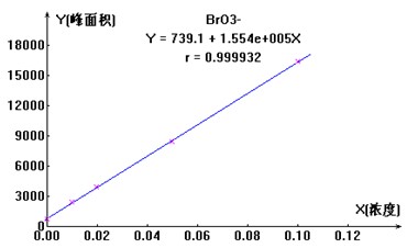 由實驗數(shù)據(jù)可知,離子色譜法測試水中BrO3-陰離子準確度高,檢出濃度低,方法簡單快捷,完全滿足環(huán)保行業(yè)對于水中BrO3-離子檢測的需求。