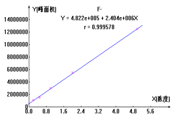 圖2 氟離子標(biāo)準(zhǔn)曲線(xiàn)方程及線(xiàn)性關(guān)系圖