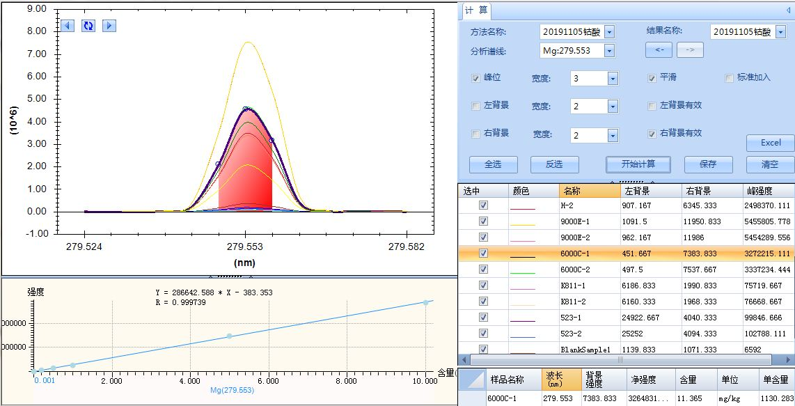 高頻發(fā)生器:27.12MHz,中心通道為1.2mm的石英炬管,高頻功率900W,反射功率約50W,等離子氣流量12L/min,輔助氣流量0.6L/min,載氣流量0.6L/min,蠕動(dòng)泵轉(zhuǎn)速3ml/min。