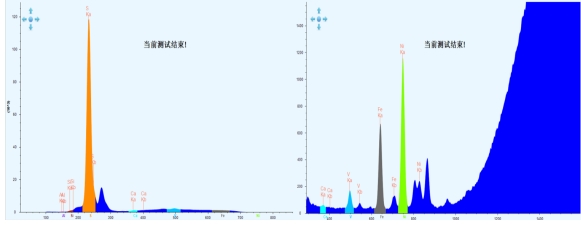 圖3為測試中使用的一個(gè)未知樣(命名石油焦1#)的測試譜圖,在譜圖中可以明顯觀察到S、V、Fe、Ni元素的特征峰,并且在此樣品中還含有微量的Al、Si、Ca、Zn元素。使用該樣品進(jìn)行重復(fù)性測試后,檢測結(jié)果中S、V、Fe、Ni元素的重復(fù)性分別達(dá)到了0.28%、3.33%、1.10%和0.71%,表明該儀器對(duì)石油焦樣品具有很好的檢測效果。